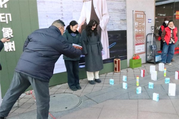 “我投中啦!”另一边的趣味游戏区域同样热闹非凡,投壶、套圈等经典项目免费向居民开放,参与者们摩拳擦掌、各显身手,加油声与欢笑声此起彼伏。社区志愿者与杏村派出所民警则化身“安全守护员”穿梭在人群中,向居民们发放反电诈、防邪教、消防安全以及禁燃禁放烟花爆竹等宣传资料,提醒大家春节临近务必提高安全防范意识,守护好自身及家人的生命财产安全,让安全理念深入人心。