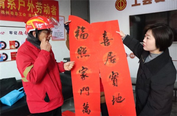 “笔墨纳福”区域则墨香四溢、暖意融融。受邀而来的书法家们凝神挥毫,在大红纸上写下一副副寓意吉祥的春联与“福”字,笔走龙蛇间,平安喜乐、吉祥如意的美好祝愿跃然纸上。居民们争相排队,定制专属自己的新春祝福。此外,活动还特别关注新就业群体,专门预留部分手写春联发放给外卖员等新就业群体,让他们在寒冬中感受到社区的关怀与新春的暖意。