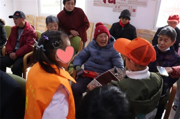 “爷爷好!”“奶奶新年快乐!”上午八点半,孩子们清脆的问候声如悦耳的风铃,先后在两个养老中心的大厅里响起。他们一拥而上,将手中的中国结、小挂件和水果送到老人们手中。小轩(化名)和自己的两个小伙伴鼓起勇气,为爷爷奶奶们唱了一首欢快的儿歌,赢得了阵阵掌声与笑声。