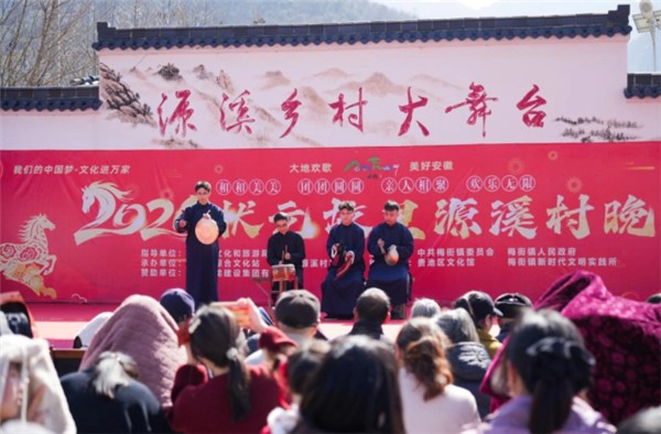 “正好趁着放假,我想出了个新点子,队伍就这么组起来了。”源溪村“95后”青年曹必冉告诉记者,自己从小就学习锣鼓,对本地傩文化有着深厚的热爱,经常利用闲暇之余向村里的老艺人走访、请教、记录,也因此收集了不少传统锣鼓演奏打法。春节前,他和志同道合的小伙伴们组建起一支青年锣鼓队,将此前收集傩戏锣鼓中的平台锣鼓加入现有打法,不仅将《平台锣鼓》搬上了源溪村“村晚”的舞台,还计划在正月十三的傩事活动里登台亮相。因此,近段时间,曹必冉几乎每天都要和伙伴们一起排练演出。“记忆里的声音又重新响起,这不仅是我们年轻一辈的精神寻根,也是那段乡土历史的鲜活重演。”曹必冉说道,保护和传承,既要原汁原味地学会它、敬畏它,也要思考如何让它被现在的大众所喜爱和理解。