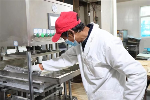 春节前,记者走进唐田镇启根食品厂,现场一派繁忙景象,浓郁的米香、麻油香与糖香扑面而来。一块块雪白细腻的糕坯,在工人手中被精心塑形、切片、包装。为迎接春节年货销售旺季,自农历十月底起,该食品厂便开启忙碌模式,工人们每天早上六七点就投入生产,酥糖、花生糖、云片糕等节日热销糕点被陆续制作出来,其中最主打的云片糕日产量稳定在四百盒左右。