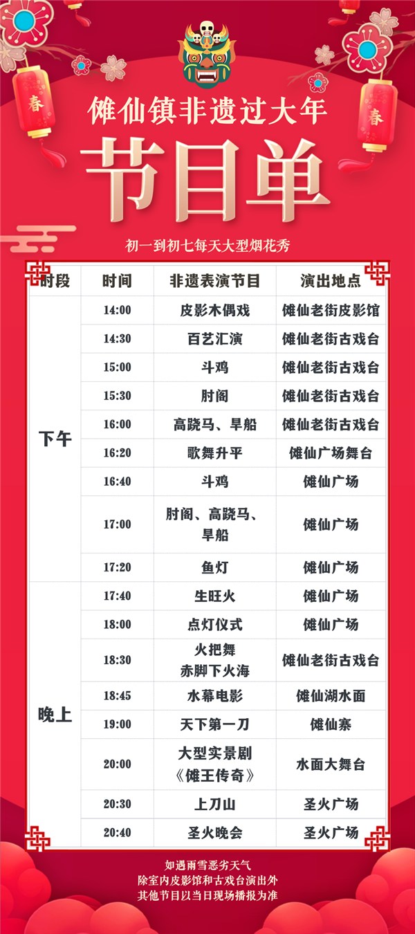 据悉,傩仙镇非遗社火大戏将持续至正月十五,除现有特色节目外,傩舞祈福、肘阁、高跷马、旱船、大型实景剧、圣火晚会等更多非遗表演和传统仪式将陆续登场,同步配套大型烟花秀、非遗市集等特色活动,让千年傩文化在新春佳节得以传承和弘扬,也进一步丰富了游客的新春文化生活,为八方宾客送上一场兼具文化味、烟火气和幸福感的新春盛宴。