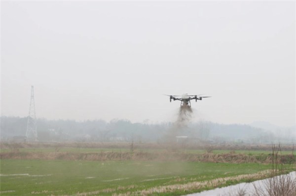 实操演示环节更是点燃了参训农户的学习热情,农用无人机精准播撒生物有机肥成为现场最亮眼的“主角”。伴随着旋翼的轰鸣声,无人机平稳升空,均匀、高效地将有机肥播撒至水田,实现精准施肥、均匀覆盖,直观展现了智慧农业、绿色农业的高效便捷,让参训农户近距离感受科技赋能农业生产的显著优势,进一步激发大家学科技、用科技的积极性。