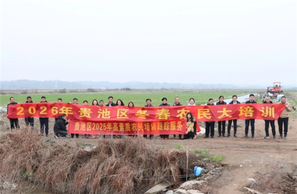 人勤春来早,春耕备耕正当时。当前,冬春农业生产已进入关键阶段,为切实把实用农技送到田间地头、把服务保障落到生产一线,助力粮食增产、农业增效、农民增收,3月5日上午,由区农业农村局主办的2026年贵池区冬春农民大培训暨2025年度高素质农民培育跟踪服务活动正式启动,全区20余名种粮大户、农机大户、转产渔民等农业经营主体代表走进田间,沉浸式学技术、取真经,为全区春耕备耕有序开展注入强劲动能。