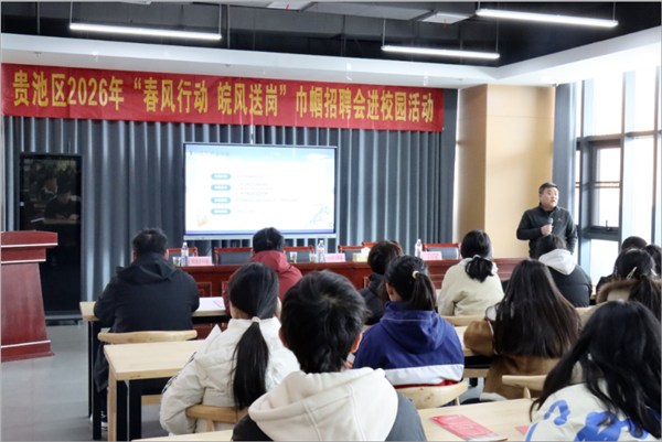 活动恰逢“三八”国际劳动妇女节,在巾帼故事宣讲环节,作为贵池区第一届“贵在有你”十佳创业女性,优秀女企业家代表桂双龙结合自身经历,讲述了从一名普通操作工起步,在数控机床与智能装备领域不断深耕最终创业成功的成长历程,分享了创业路上把握住的时代机会、团队管理的感悟以及面对挑战时的坚守,为学校首届即将步入职场的学子们上了一堂生动的“就业课”,让学子们对职业发展、本土就业有了更清晰的认知。随后,区公共就业和人才服务中心负责人围绕青年人才就业创业政策进行详细解读,从一次性补贴到住房保障、生活补贴等一项项干货政策精准滴灌,让毕业生对未来在贵池发展有了更大的信心,更加坚定了扎根家乡、建功本土的决心。
