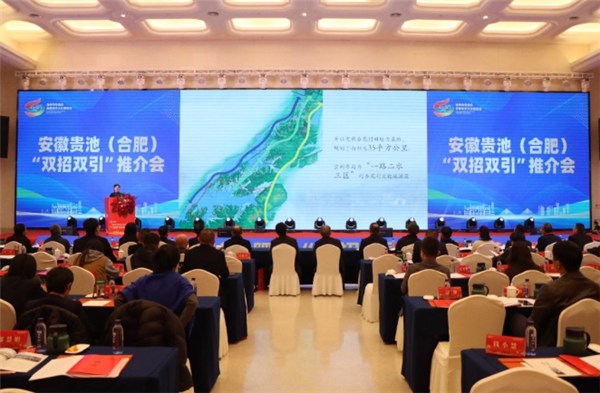 在贵池区合肥经济文化促进会一届一次会员大会上,审议通过了促进会章程、选举办法等文件,依法选举产生促进会第一届理事会及领导班子。在随后举行的安徽贵池(合肥)“双招双引”推介会上,池州高新区、杏花村文化旅游区、池州船舶工业基地及区委组织部相关负责人依次开展产业与人才政策推介,全面展现贵池的区位优势、资源禀赋、产业基础和优良营商环境。