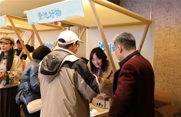 期间,在新编贵池民歌《烟雨杏花村》的暖场烘托下,贵池特色文化节目轮番登场。乌石手狮舞《金狮呈祥》生动展现了贵池非遗文化的深厚底蕴;以平天湖山水风光为灵感创作的歌曲《平天湖水四季蓝》,唱出了山水之美、人文之丰。此外,活动还精心打造了“池州风味集”与“池州好物街”两大板块,集中展示了众多池州特色美食与文创产品,引得嘉宾纷纷驻足品尝、体验。