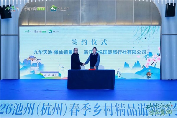 推介会核心环节——签约仪式取得丰硕成果。池州市贵池区九华天池景区与杭州重点旅行社代表现场签署战略合作协议,标志着两地在客源互送、资源共享、市场共建等领域迈入更深层次的合作阶段。