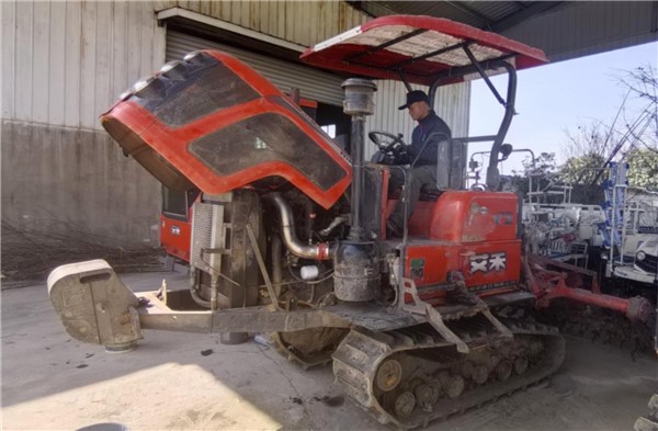 眼下气温回升,春意融融,在秋江街道高脊岭社区,种粮大户曹必峰家的农机大院里整齐停放着拖拉机、旋耕机和播种机等30多台(套)各类农机具,宛如整装待发的“钢铁军团”。伴随着“叮叮当当”的金属碰撞声,农机维修师丁磊手持扳手,仔细检查着一台履带式拖拉机。