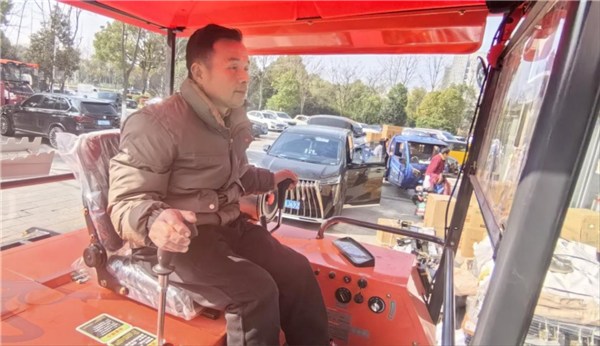 “老板,我订的那台‘新宝贝’呢?”余东生是马衙街道种粮大户,为了赶上春耕的“头班车”,他一大早就赶来提货。看到经销商正将一台崭新的机器开进交车区,余东生三步并作两步迎了上去,围着车头转了好几圈,又迫不及待地坐进驾驶室,握着方向盘感受了一番。“这台机器原本要8万左右,但旧农机报废补贴加上新农机购置补贴能抵2万多,算下来只需要交5万多一点,划算得很!”余东生满脸笑意,“马上就要整地了,今天就把它带回家!”