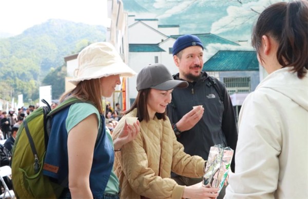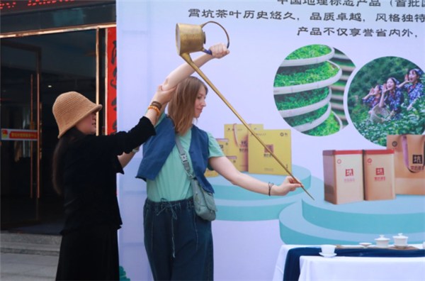 “刚泡好的绿茶来咯!”台上,演员们踏着轻快的节拍,将采茶、制茶的场景搬上舞台;台下,霄谷春茶雅集内人头攒动,游客们手捧一杯绿茶,相互交流着感受。“这里的绿茶和我们国家的茶很不一样,层次很丰富,像春天的森林。”来自俄罗斯的茶友爱林小心翼翼地端起一杯刚泡好的霄坑绿茶,凑近闻了闻,让她感到惊喜不已的还有古色古香的功夫茶表演和傩舞开园仪式,她一边拿起手机录像拍照,一边观赏惊呼,还和朋友们一起亲身学习体验了功夫茶表演。“霄坑茶味道很香,这里的文化也让我很着迷。”爱林连连竖起大拇指。