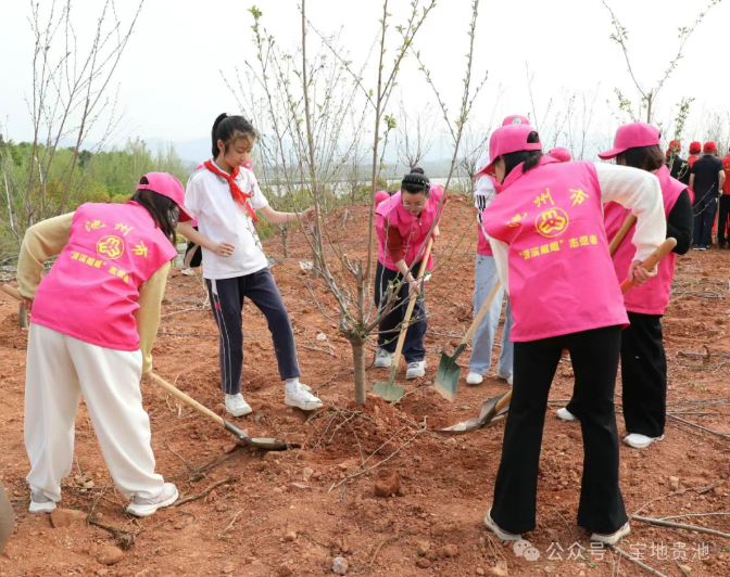 4月7日下午,区委书记何刚、区长钱松、区人大常委会主任方文生、区政协主席鲍胜利、区委副书记张焕等区四大班子领导与全区机关干部、群众及学生代表来到江口街道查村社区韩村组,参加2026年池州市暨贵池区党政军领导义务植树活动,以实际行动践行绿色发展理念,为美丽贵池建设再添新绿。