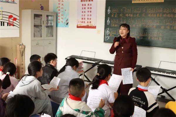 歌声唱出了好日子,也唱出了乡愁的延续。但要守住这份乡愁,最重要的还是让民歌“不断根”。每周三下午,墩上中心学校的音乐教室里都会传出稚嫩的童声。贵池民歌省级代表性传承人钱秀华站在讲台上,一句一句地教孩子们唱《朵朵山花摇春波》。她从发声技巧教起,讲到曲调节奏,再讲到歌词里的农耕记忆,把民歌中的乡土故事掰开揉碎了讲给孩子们听。“我从2002年开始学唱民歌,到如今已20多年了。”钱秀华说道,“姜秀珍老师总说‘民歌不能断根’。”这句话,她一直谨记。如今,她接过这份责任。“我带徒弟,在学校里教孩子们唱,就是想把这份乡音、这份文化,一代代传下去。”随着新生力量的加入,贵池民歌也不断融入时代元素,近年来,新生代歌手们结合普法、乡村振兴等主题,创作出了一系列“接地气”的作品,时代精神在悠扬的歌曲中不断传递。