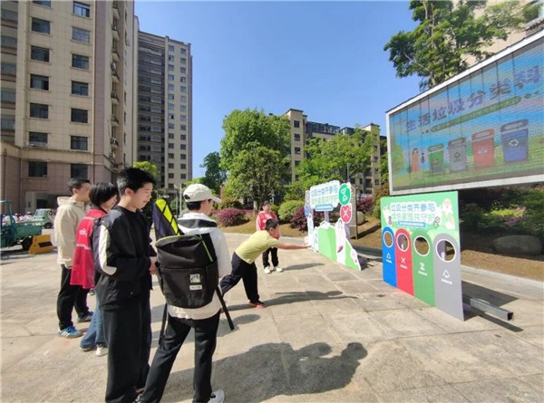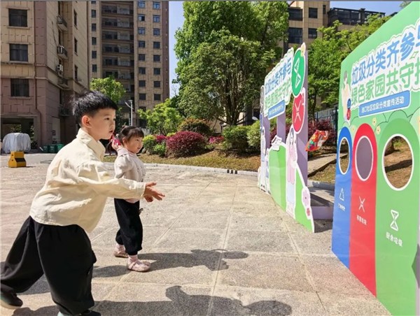 “电池是有害垃圾,红色那个!”一个小男孩踮起脚,把印着“废旧电池”的沙包塞进红色洞口,“中了!”身后的大人们也跟着笑起来……记者在现场看到,四个投放口分别贴着厨余垃圾、可回收垃圾、有害垃圾、其他垃圾的标识,沙包上则印着电池、西瓜皮、纸盒、废旧灯管等常见物品名称。大家有序排着队,每投中一次便引来一阵欢呼。