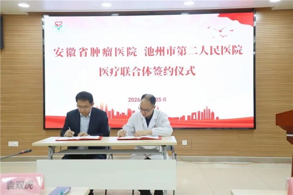 当天,安徽省肿瘤医院与池州市第二人民医院医牵手成立医联体,实现医疗资源共享和技术帮扶,是第一件大事。作为全省肿瘤防治领域的“排头兵”,安徽省肿瘤医院技术实力雄厚,专科优势突出,正式“牵手”后,市二院将全面对接安徽省肿瘤医院优势资源,切实打通省级优质医疗资源服务基层的“最后一公里”。“我们将充分发挥技术、人才、科研优势,在诊疗规范制定、技术指导、人才培养等方面给予全方位的支持。”安徽省肿瘤医院院长袁双虎表示,后续将通过专家下沉坐诊、远程会诊、手术示教等方式,携手完善全链条服务体系,让贵池老百姓在家门口就能享受到规范化、同质化的癌症诊疗服务。