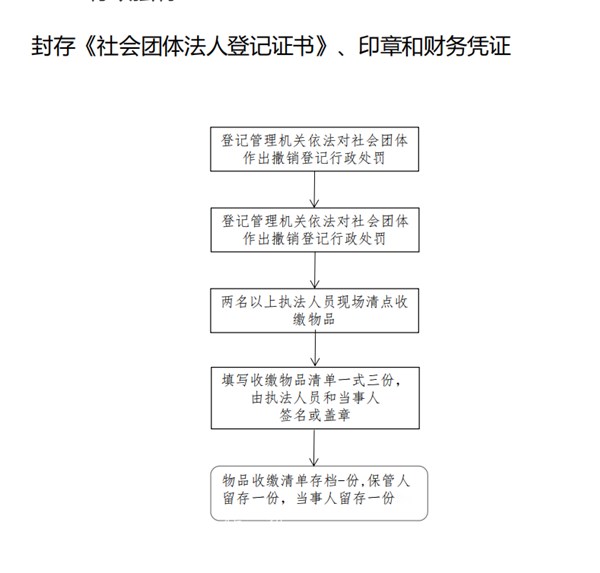 封存《社会团体法人登记证书》、印章和财务凭证流程图