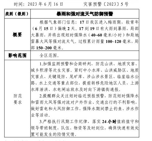 【预警信息】贵池区应急管理局预警信息