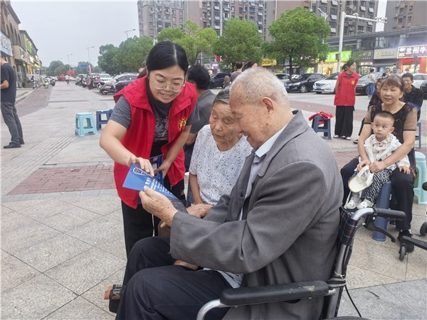 在香格里拉B区广场,街道工作人员和派出所民警,通过在现场屏幕循环播放反诈宣传小短片、发放宣传资料、面对面解答等多种形式,深入浅出地向居民讲解了电信诈骗的常见手段。