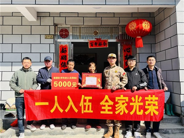 今年春季征兵工作启动后,即将毕业的张奇凯又在第一时间报了名,并最终通过体检政考。眼看愿望实现、全家都为自己感到高兴的时候,即将远行的张奇凯却放心不下患病数年的父亲。为让张奇凯彻底打消后顾之忧,棠溪镇人武部和退役军人服务站及时与张奇凯家庭结成帮扶对子,并向其郑重承诺:“你放心,家里有我们。”深受感动地张奇凯也坚定表示:“我一定努力学习、刻苦训练,决不辜负党和政府的关心关爱!”